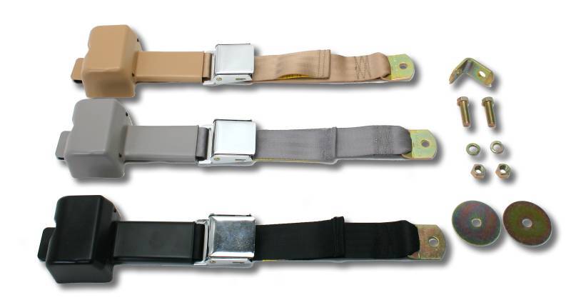SEAT BELT, TAN, LAP 2 POINT RETRACTABLE WITH HARDWARE, BUG / BUS / GHIA / THING / TYPE 3 *MADE IN USA*