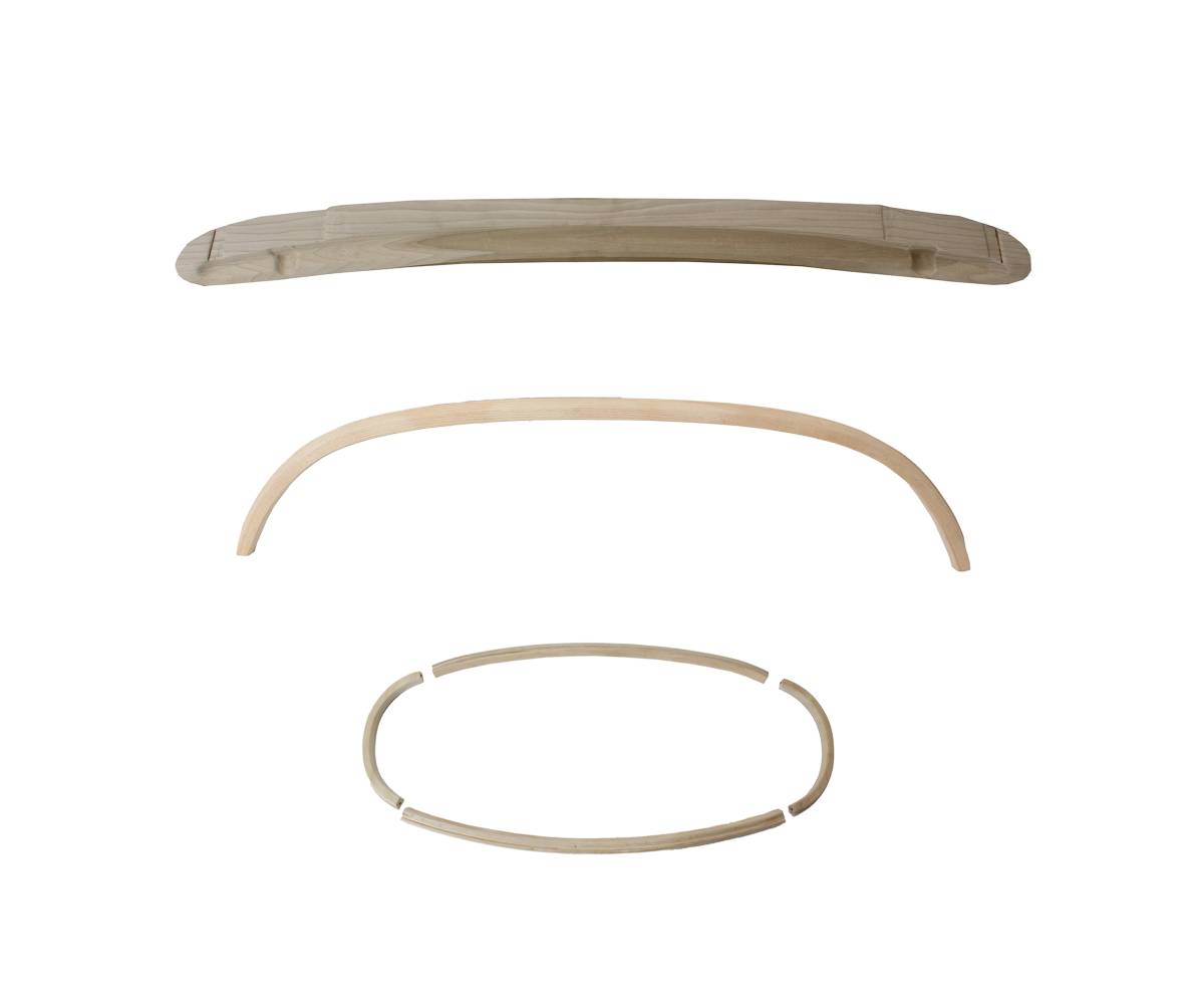 Convertible Wood Top Bow Kit Includes: Header Bow, Rear Bow, Rear Window Frame Insert. Made in the USA.